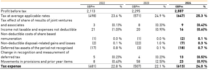 More detail on the corporate income taxes reflected in our annual accounts can be found in note 9 of RELX’s 2024 annual report. The reconciliation of our effective tax rate to the weighted average expected rate is reproduced below.