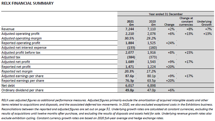 RELX, the global provider of information-based analytics and decision tools, reports results for 2021.